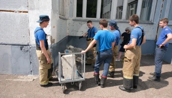 В преддверии годовщины со дня смерти заслуженного спасателя Татарстана Алексея Шаповалова нижнекамские огнеборцы провели субботник на территории лицея № 31, носящего его имя.