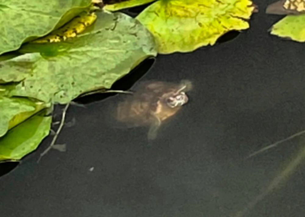 Также она отметила, что по словам местных, в пруду обитает целое семейство черепах.
