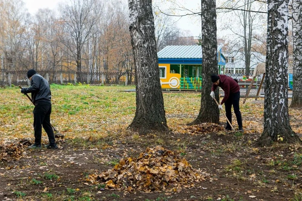 Сотрудники подрядной организации «Ямата», задействованные в реализации инвестиционных проектов на «Нижнекамскнефтехиме», помогли социальному приюту для детей и подростков «Балкыш» убрать территорию от опавшей листвы.