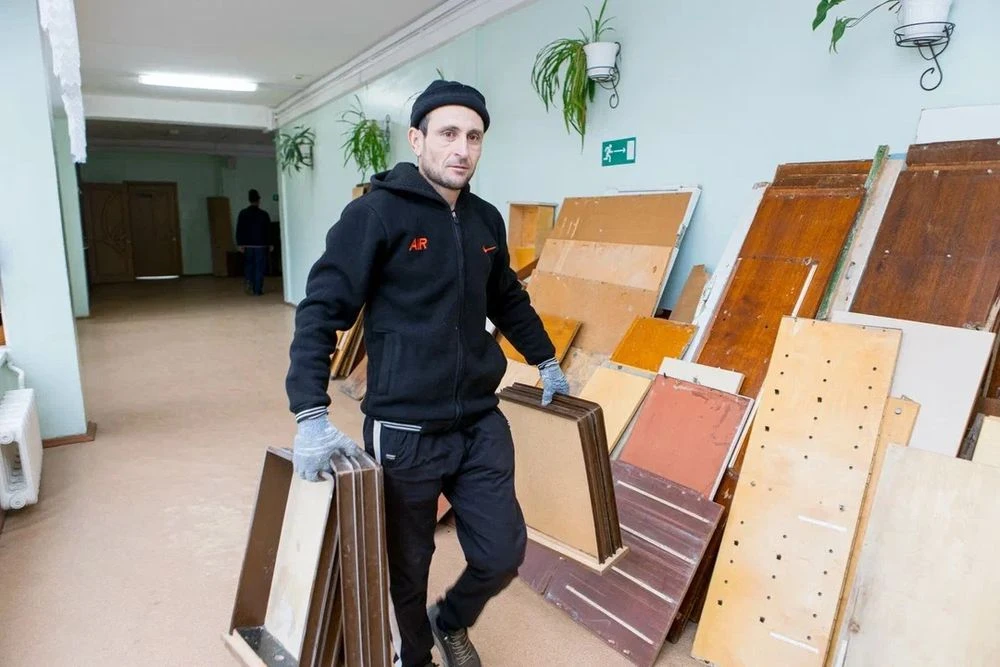 Ремонт в школе стартовал недавно, и первоочередной, причем достаточно непростой, задачей для руководства стало освобождение площадей от мебели для проведения ремонтных работ.