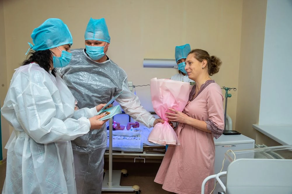 Мэр Нижнекамска Радмир Беляев передал поздравления с Днём матери молодым мамам в роддоме: представители администрации вручили женщинам букеты и открытки с персональными обращениями.