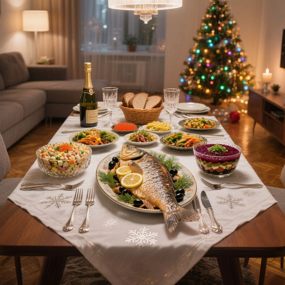 - Овощные блюда и зелень: салаты с хрустящими овощами и зеленью поддержат «зелёный» оттенок удачи и ощущения обновления.