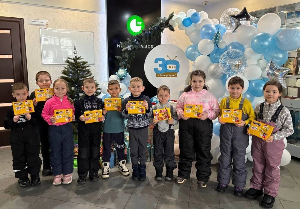 Продолжается благотворительная акция НТР «Стань Дедом Морозом!». Сегодня с подарками и хорошим настроением к нам пришли ученики гимназии № 1. Они принесли для детей сладкие новогодние наборы.