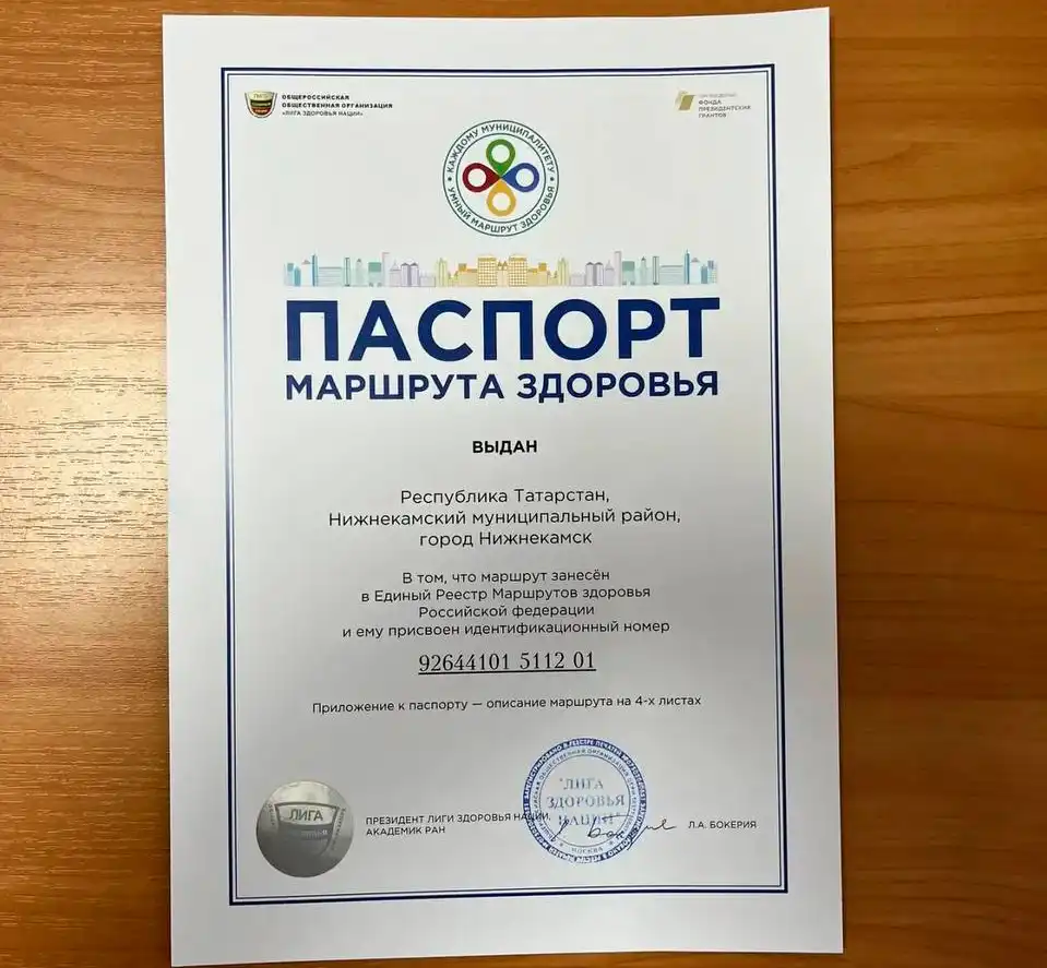 Нижнекамская «Тропа здоровья» в лесном массиве у спорткомплекса «Батыр» получила паспорт и была официально признана на федеральном уровне.