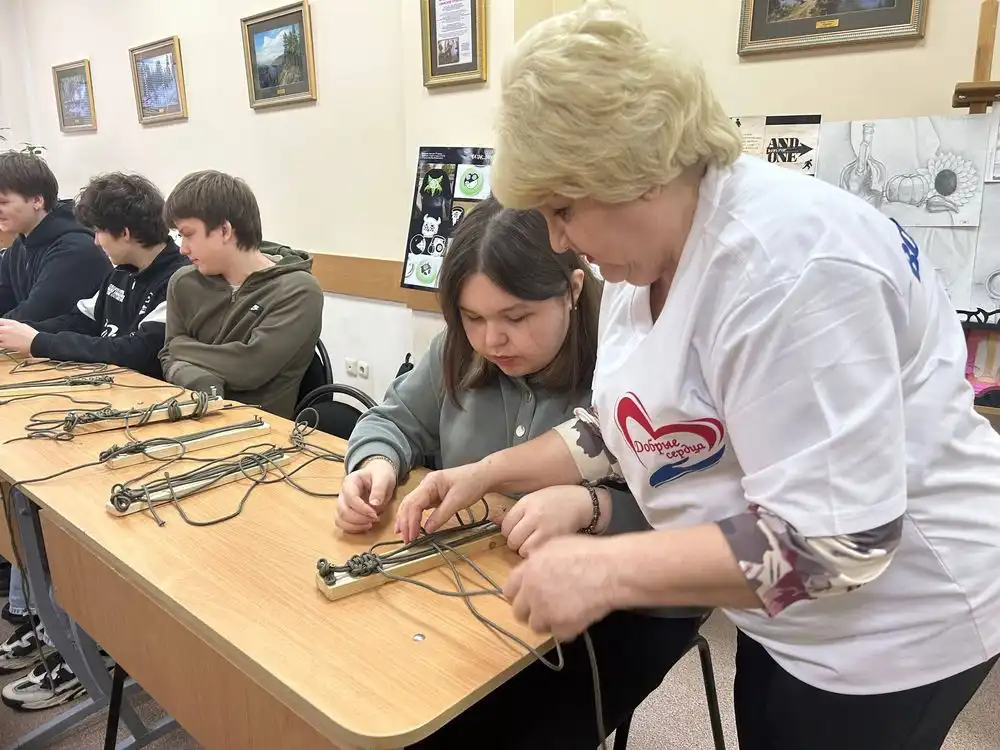 Волонтёры группы «Добрые сердца» тесно сотрудничают с колледжами, школами и детскими садами города. Каждую неделю они проводят по несколько мастер-классов, где учат делать комплекты сухого душа, плести браслеты выживания и маскировочные сети.