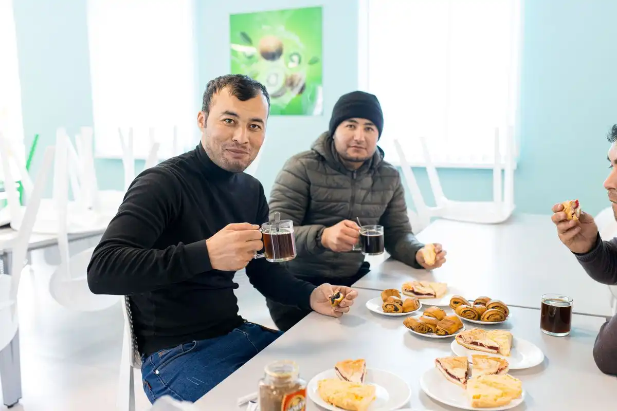 Электрики и подсобные рабочие из Узбекистана с радостью вызвались помочь учебно-тренировочной базе. За лопаты дружно взялись 10 сотрудников «Яматы», а после работы угостились горячим чаем.