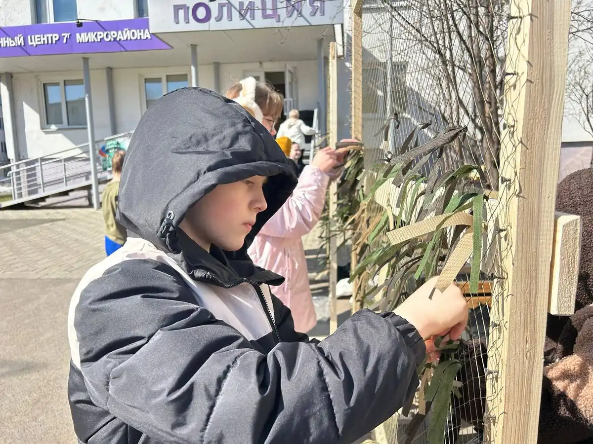 Работа кипит и на улице. Здесь трудятся одноклассники девочек, плетут маскировочные накидки. В народе это называется «костюм лешего». Руководит процессом ученица 9-й школы Злата Романова. Именно она создала в своём классе группу «Дружные волонтёры». И теперь ребята помогают взрослым даже во время каникул.