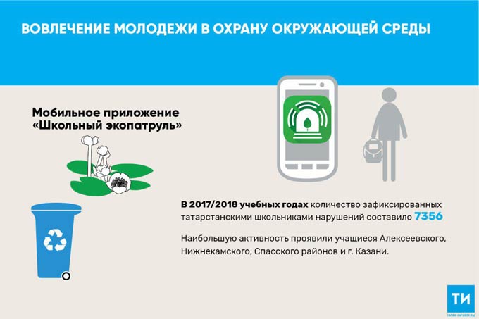 Ученики татарстанских школ зафиксировали 7 356 нарушений с помощью мобильного приложения «Школьный экопатруль» за 2017/2018 учебный год, сообщает пресс-служба Министерства экологии и природных ресурсов РТ.