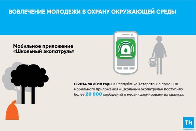 «С начала года в республиканскую общественную приемную Министерства экологии и природных ресурсов РТ поступило 10 304 обращения. Самыми активными помощниками экологов являются школьники. От них через мобильное приложение „Школьный эко-патруль“ пришло 54% от общего числа сообщений», — отметили в министерстве.