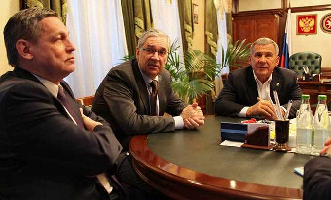 Президент Республики Татарстан Рустам Миннихинов встретился с генеральным директором Всероссийской государственной телевизионной и радиовещательной компании (ВГТРК) Олегом Добродеевым.