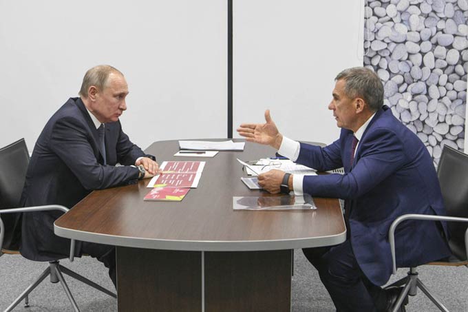 Вчера во время своего визита в Татарстан Президент РФ сделал несколько шутливых замечаний в адрес главы республики. На заседании президиума Госсовета РФ Путин хотел передать слово Минниханову, но, не увидев его в зале, заметил: «Взял и ушел куда-то. Куда вышел?» До этого глава государства в шутку упрекнул Президента РТ в невнимательности. «Рустам Нургалиевич, Рустам Нургалиевич. Не отвлекайся, что ты? Не слушает нас», – посетовал Путин.