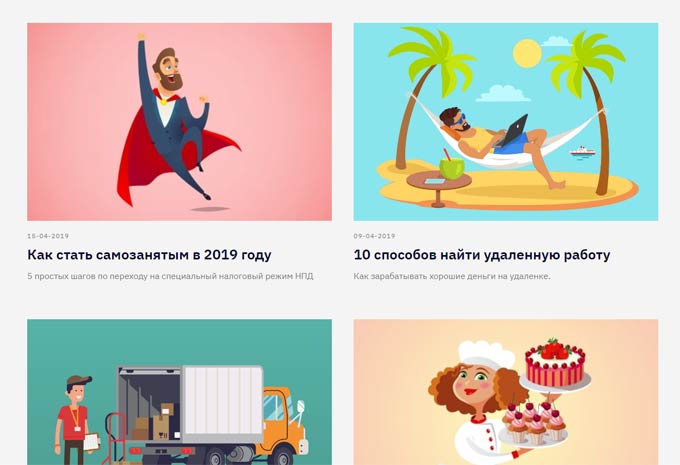 Благодаря данным статьям пользователи Интернета могут узнать о способах поиска работы в качестве самозанятого, а также получить ответ на вопросы: «Какую цену установить на товары, чтобы извлечь гарантированную прибыль?», «Как бороться с негативными отзывами в Интернете?» и др.