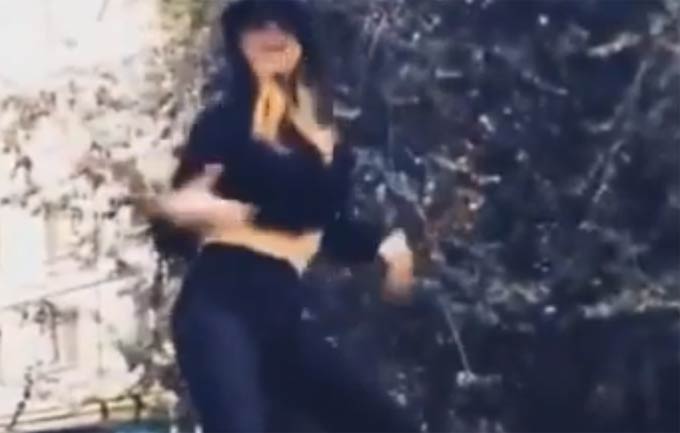 Соответствующее видео появилось в социальных сетях. На кадрах видно, как девушка танцует на автомобилях, прыгая с одного на другой.