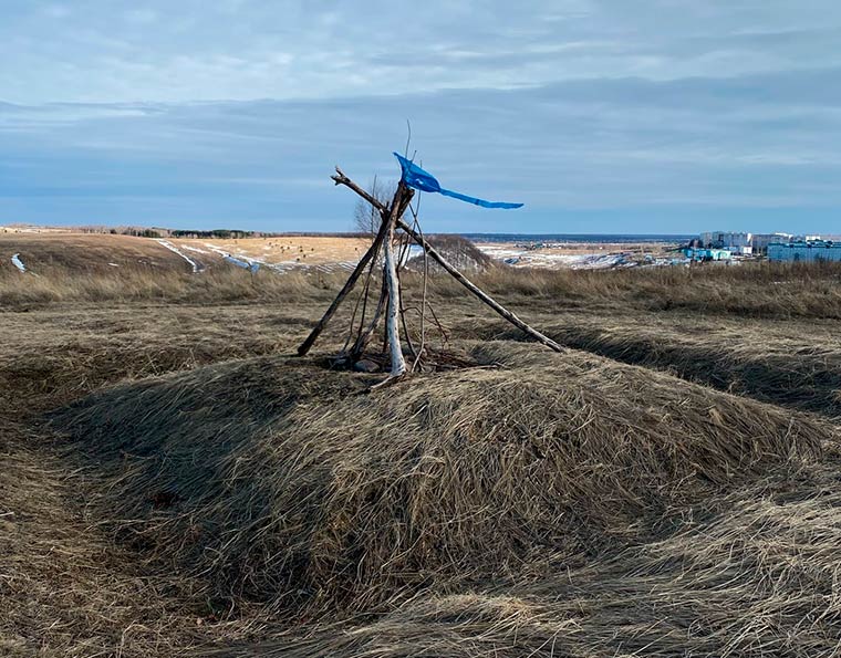 Жительница посёлка Камские Поляны Нижнекамского райна Татарстана во время прогулки на горе обнаружила большое кострище и загадочную конструкцию из камней.