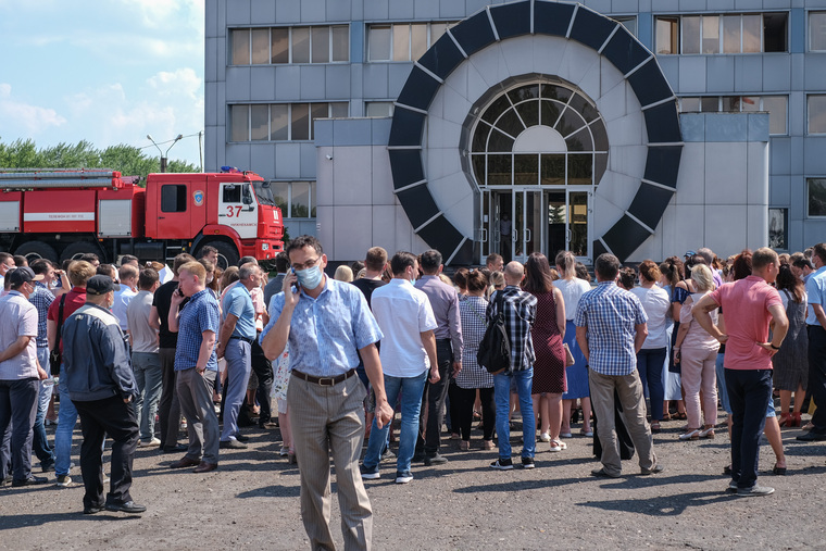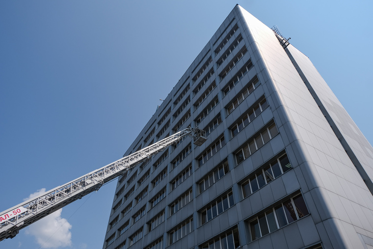 Первым на место пожара прибыл дежурный караул во главе с начальником части Ниязом Фазлетдиновым. Как руководитель тушения пожара он провел разведку и выяснил, что из здания не смогли эвакуироваться два человека на 3 и 7 этажах здания.