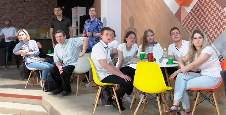 Работники 12 подразделений предприятия разделились на группы. Впереди их ждали семь туров, в каждом по восемь вопросов.