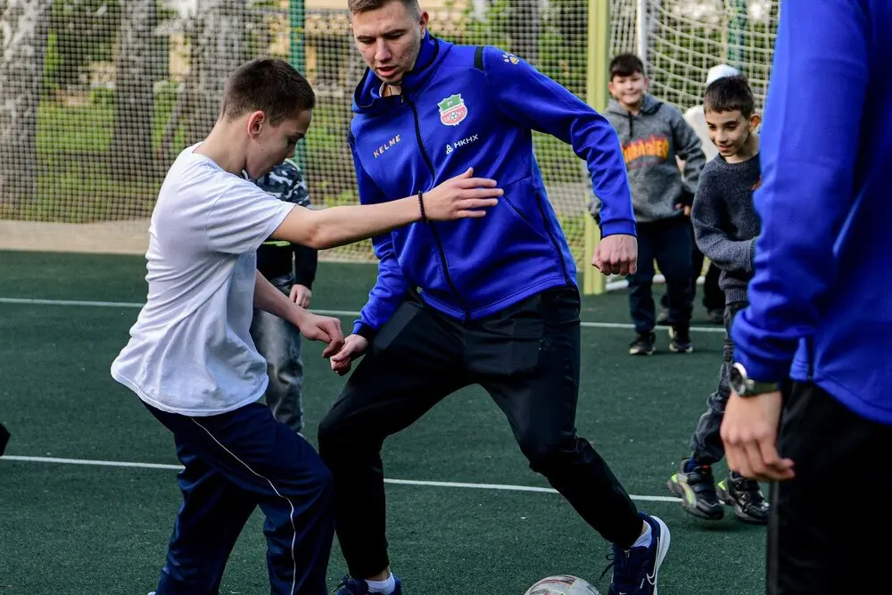 Программа встречи получилась насыщенной: профессиональные футболисты организовали для ребят мини-матч, провели автограф-сессию и вручили подарки.