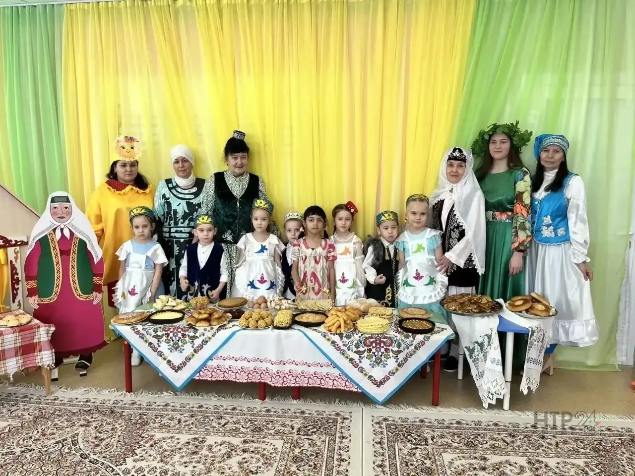 Нәни түбәнкамалылар аларга барлык сәләтләрен күрсәттеләр: яз турында шигырьләр сөйләделәр, җырлар башкардылар, халык уеннарында бик актив катнаштылар. Бәйрәмнең иң күңелле мизгеле – татлы мәҗлес. Барлык катнашучылар да чәй өстәле янына җыелдылар. Төрле милли ризыклар: чәкчәк, өчпочмак, кыстыбый һәм башка камыр ашлары белән сыйландылар.